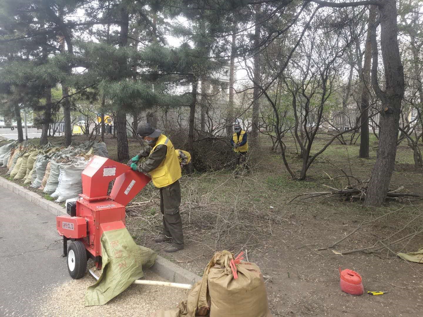 修剪下的枝条及时进行粉碎,粉碎成纤维状或片状的木粉,可以再次回归林地,经自然发酵变为肥料,充分体现本项目实施中生态、环保、节约及持续发展的经营理念。