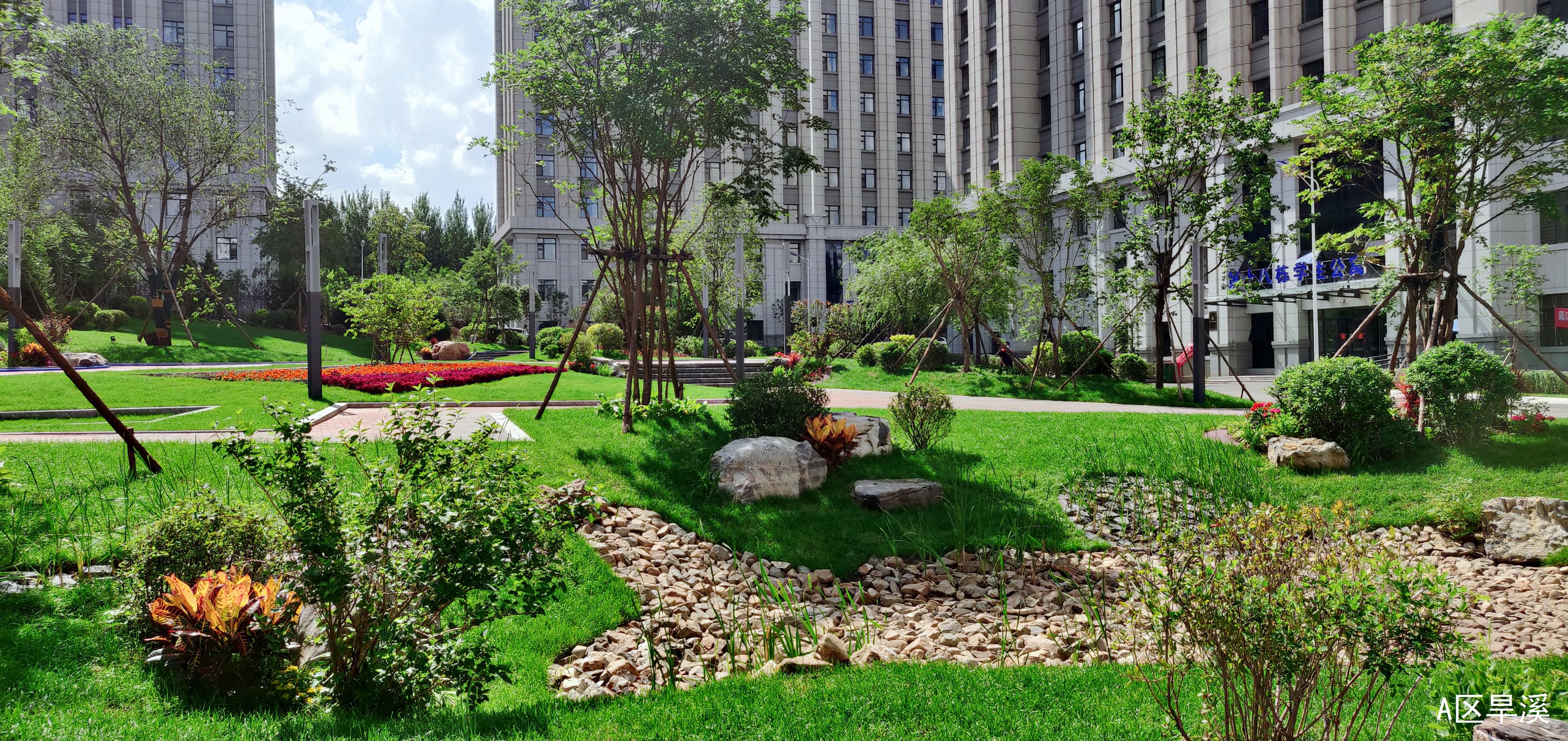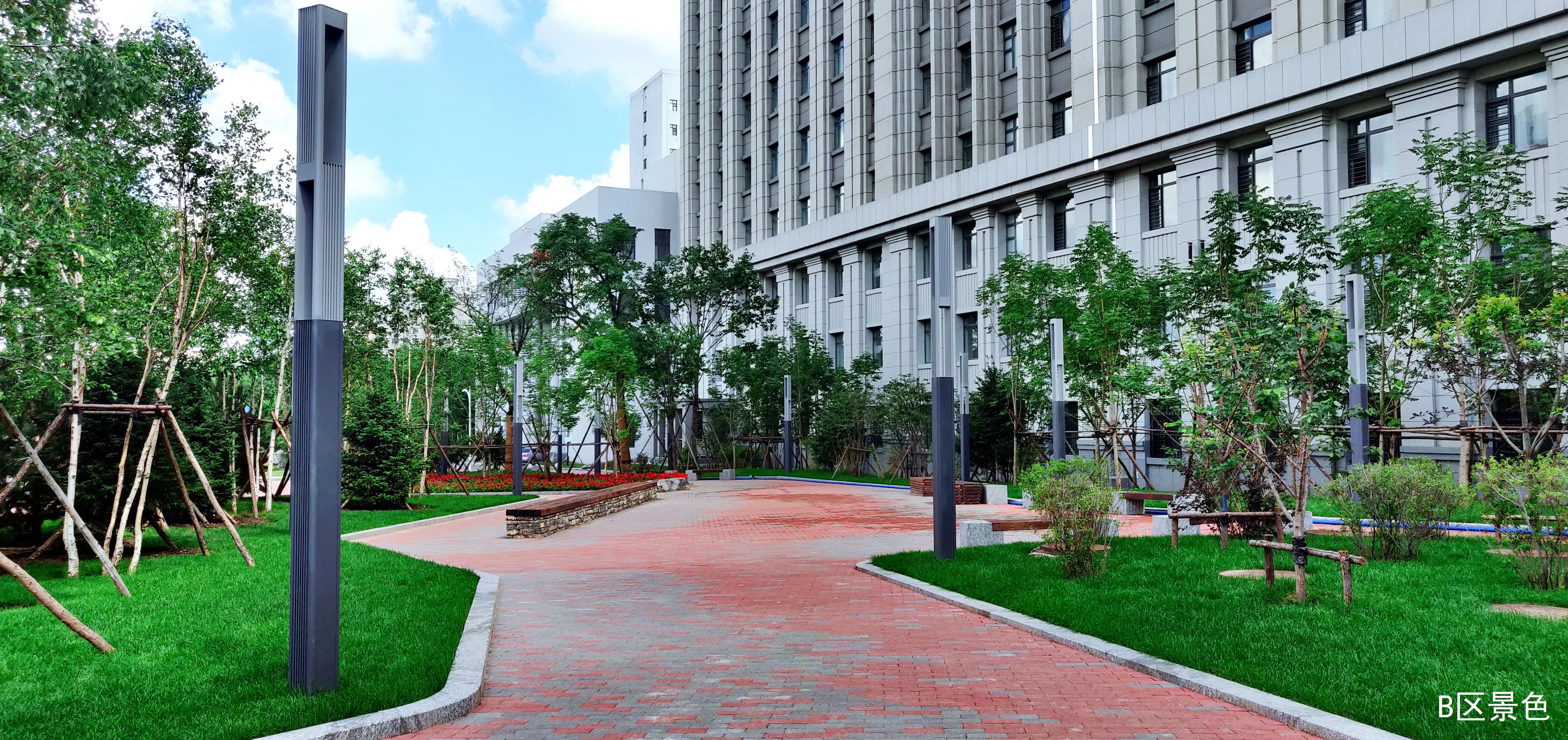 根据校园建设总体规划和南区总体建筑功能布局,该项目占地面积1.82万㎡,绿化面积1.5万㎡,先后种植50个品种2100余株木本植物,铺装透水砖3200㎡,石笼景墙2组,景观石120吨,生态沟净水、排水180㎡,安装景观灯65套,可容纳10000余名师生工作、学习、生活。