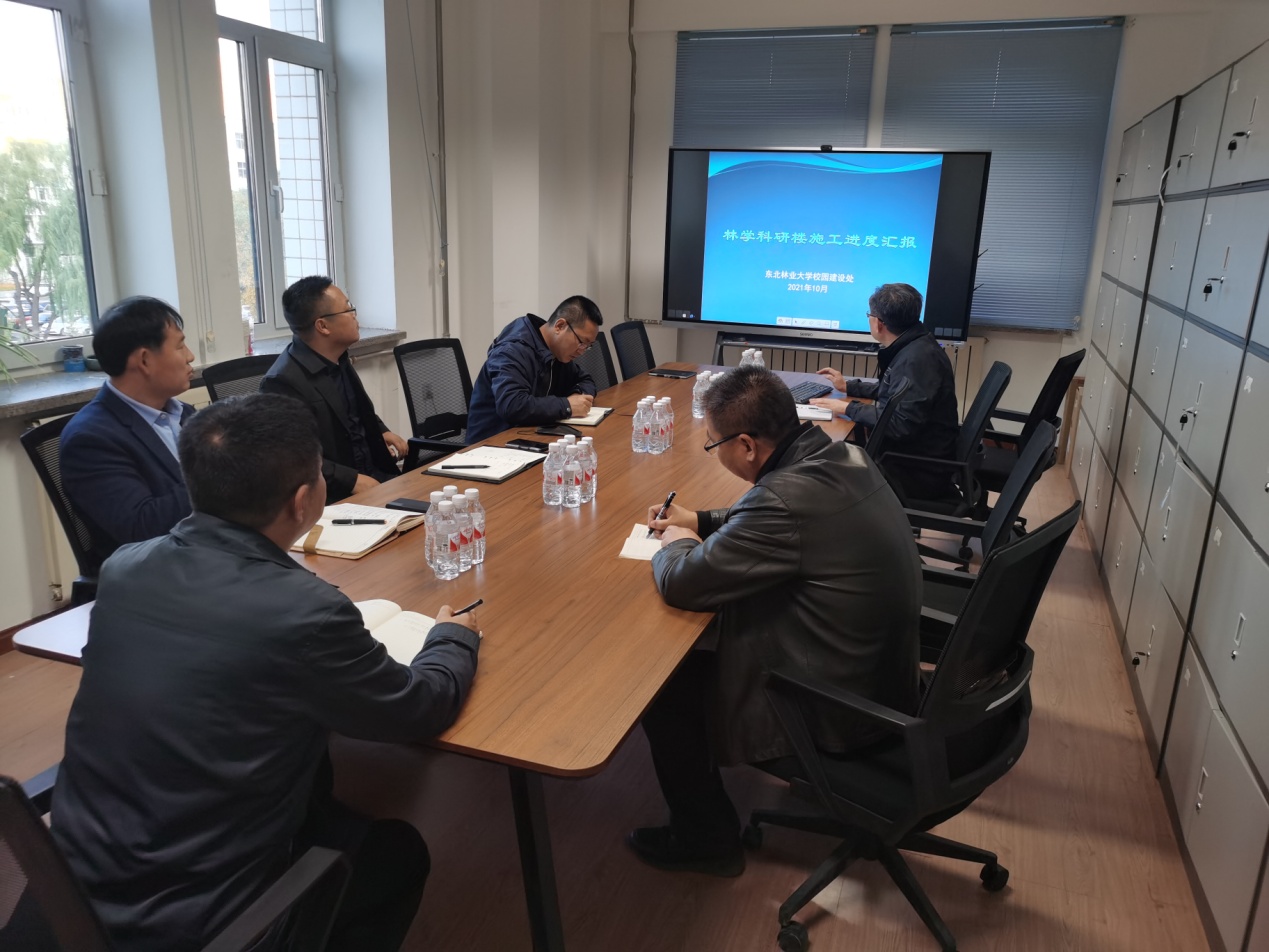 杨林副处长分别对林学科研楼、3号学生公寓进入十月份以来的实施进展情况、目前存在的主要问题及下一步具体工作举措进行汇报。