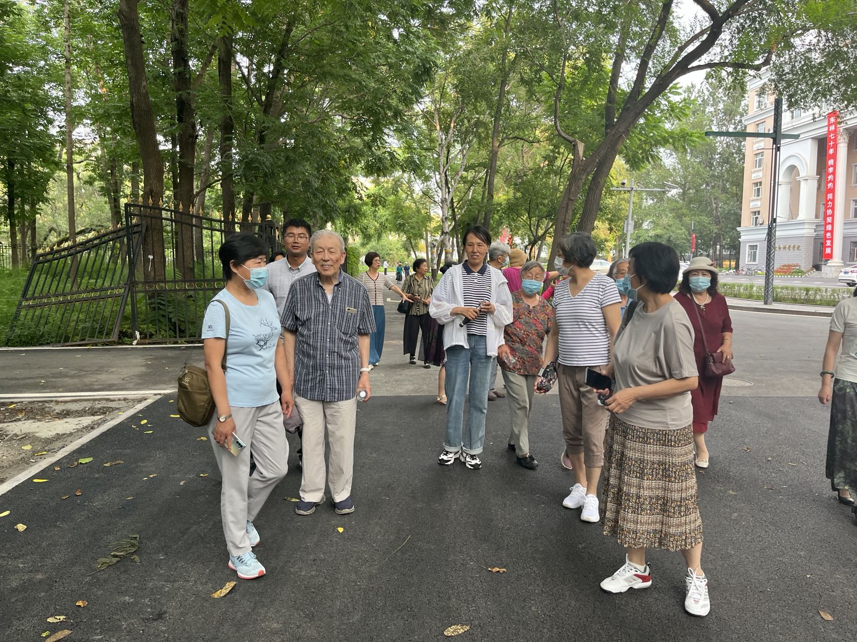 活动按照既定路线开展,参与活动的老同志们一同乘坐大巴车,从离退休职工活动中心出发,沿途走过锦侨广场、主楼后喷泉广场、校友广场,以及新建的兴安门,一路上有校园建设处的同志们对校园的新景观进行详细且专业的讲解,从设计的理念初衷讲到花草树木的品种,老同志们听得津津有味、乐此不疲,一路欢歌笑语、打卡拍照。