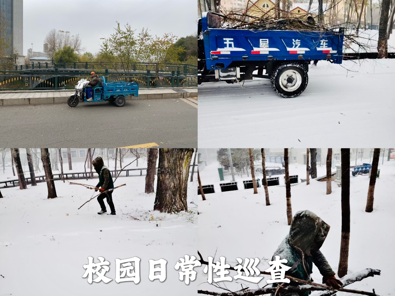 校园日常性巡查工作持续开展,及时发现、清理风折枝、悬挂枝,保障师生通行安全。完成了缓存的绿化修剪物、废弃物等绿化垃圾的外运工作。