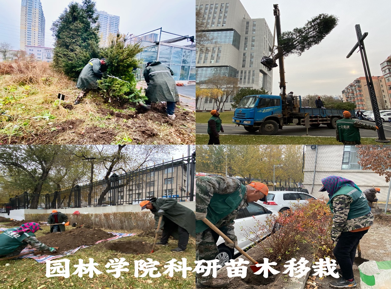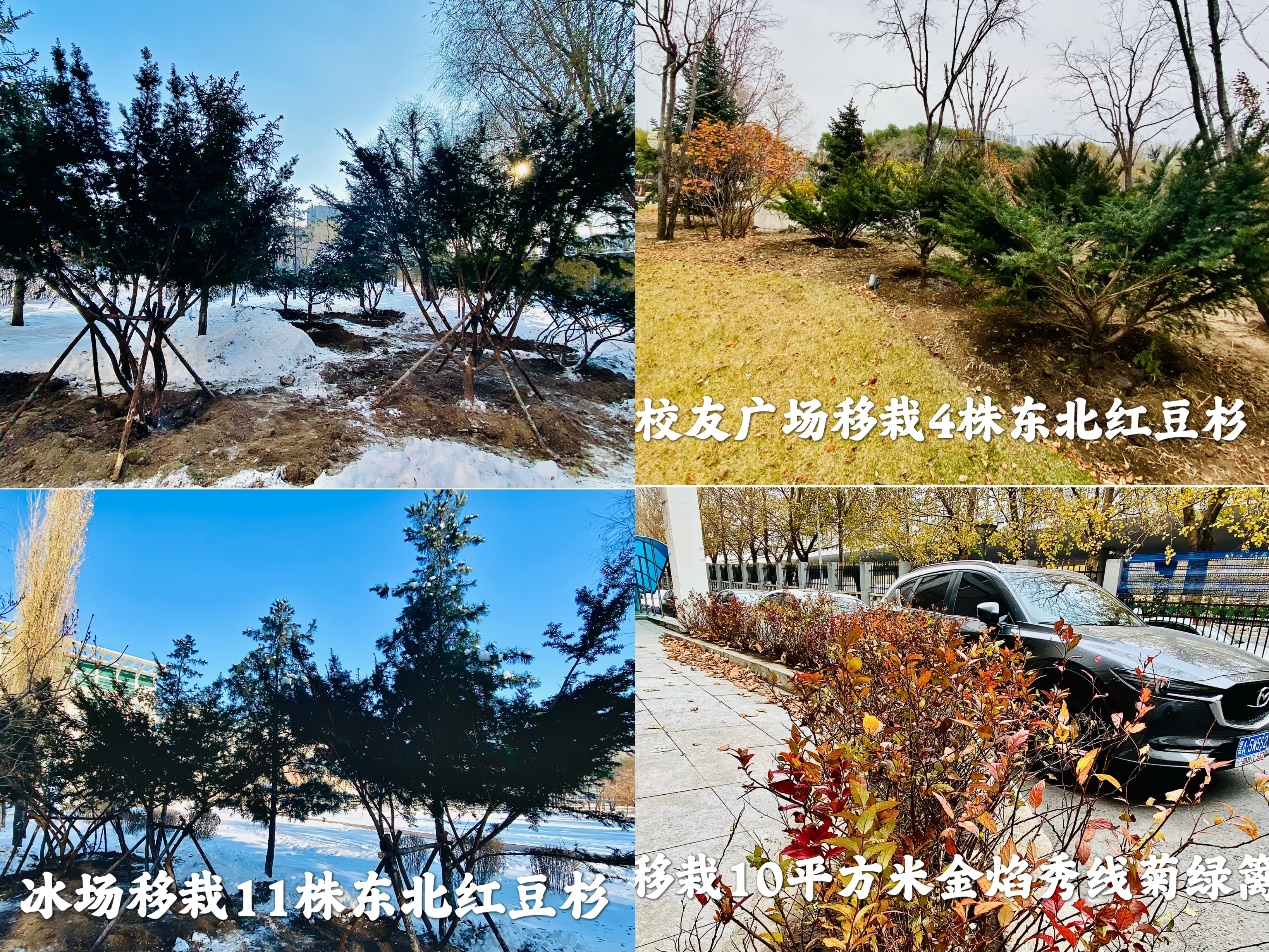 10月31日~11月12日,先后完成了园林学院32株北美香柏、4株东北红豆杉、10平方米金焰绣线菊绿篱和林学院11株东北红豆杉的移植工作。此次47株科研苗木移栽校园,为我校教师科研成果展示及科研活动的开展提供了场所和平台,丰富了校园植物的内涵,为西区自来水接入工程顺利开工提供了场地条件。