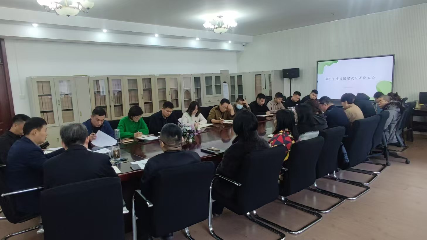 12月31日上午,校园建设处处级领导班子及处级领导干部年度述职大会在综合办公楼410会议室召开,校园建设处全体人员参加,会议由曲洪亮处长主持。