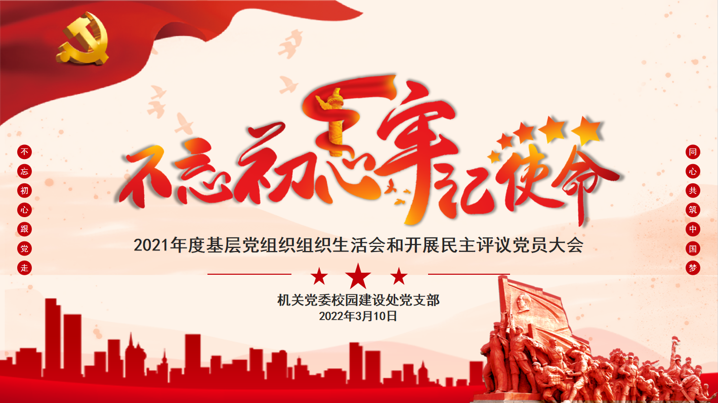 3月10日,校园建设处党支部2021年度基层党组织组织生活会和开展民主评议党员大会在综合办公楼401会议室召开,校园建设处党支部全体党员参会,会议由党支部书记焦树仁主持。