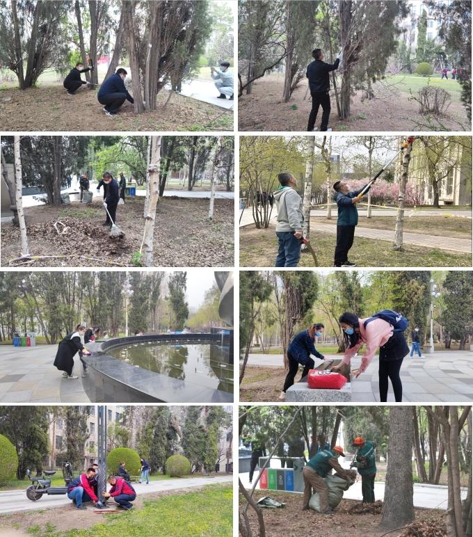 脚踏实地,践行建心建业使命担当。“立德立行,树木树人”,锤炼党性修养,强化宗旨意识,支部共建主题党日活动不仅仅是一次实践活动,更重要的是通过主题党日活动让日常工作、业务发展、队伍建设有机地结合起来。参与本次活动的三个机关党支部是日常工作业务联系紧密的部门组织,开展此次支部共建活动目的就是在于以活动凝聚人心、促进交流,让三个部门在未来的工作中齐心协力、一起向未来,朝着“促发展、添色彩、树形象、暖民心”的工作目标前行。疫情当下,开展支部共建活动实属不易,三个党支部的同志们身先士卒、争当住校先锋,舍小家为大家,在活动中忘记职位、忘记身份,戮力同心、撸起袖子埋头干,一锯一修、一擦一净,经过一个多小时的不懈努力,最终将喷泉广场区域的树木修剪成型,座椅擦拭干净、电路修整完善、枯树残枝清理干净,让巍峨的主楼后方呈现出崭新的面貌,焕发出新的生机与活力。