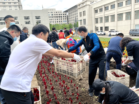 林田花海泥土香,备耕种花正当时。在端午节即将来临之际,机关党委七党支部共70余名党员一同参加了花卉种植体验式劳动。活动现场一片忙碌景象,大家一改平时严肃模样,搬起一箱箱载着泥土的秧苗,看齐瞄准、俯身种下一棵棵红色的小花,以实际行动践行“脚下有泥土,心中有群众”的信念,为学校70周年校庆营造美丽环境和良好氛围。