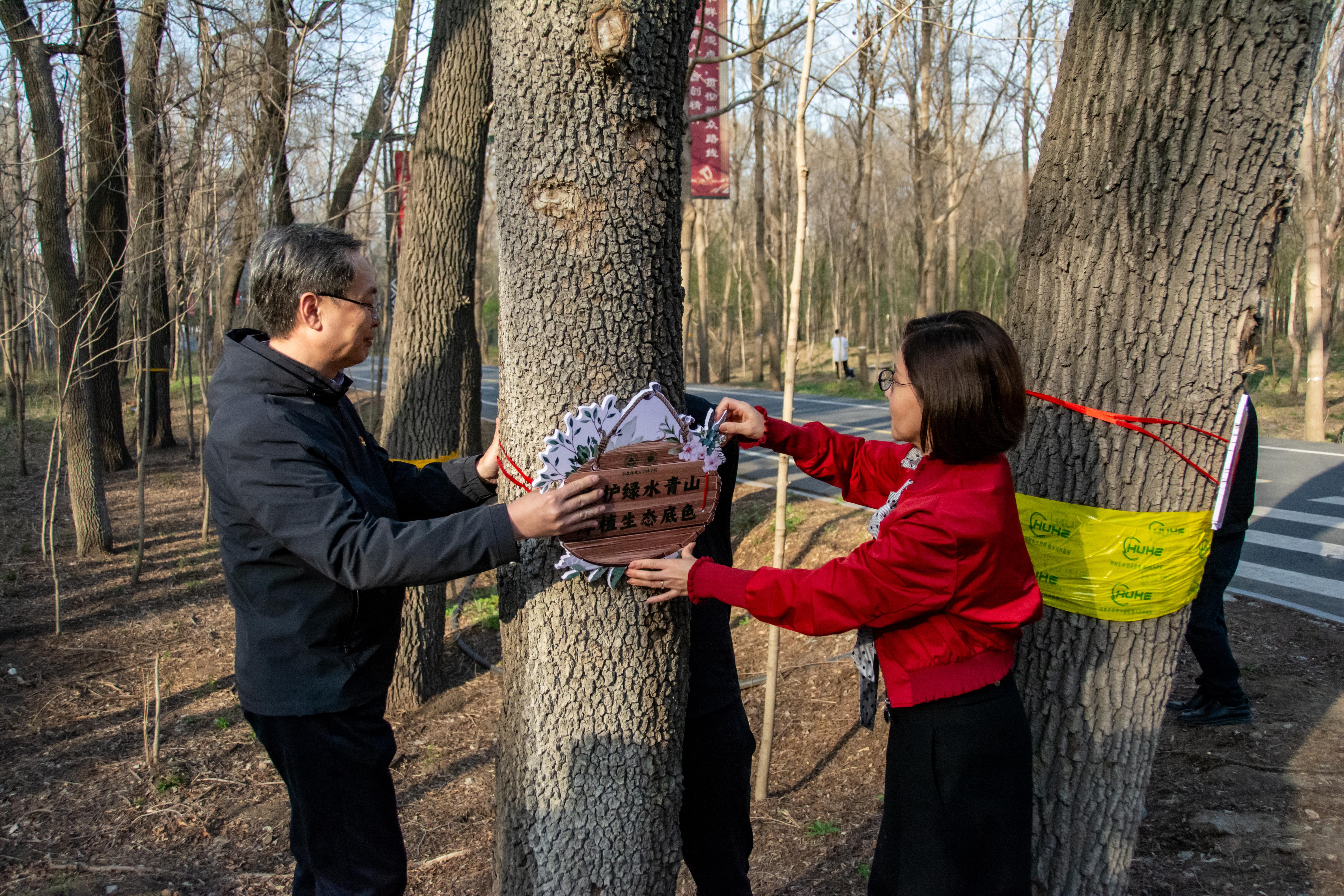 随后,在场师生共同进行文明标语挂牌活动。“守护绿水青山,厚植生态底色”、“赛罕悠悠载奉献,追青逐绿迎发展”等一条条文明标语彰显林学学子爱绿护绿的使命情怀。林学学子也必将像这些标语一样,用实际行动守护着祖国的绿水青山。