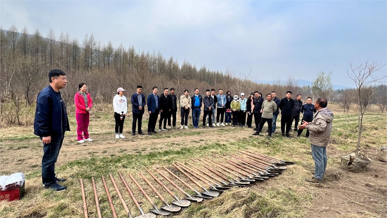 当天,阳光明媚,春意盎然,帽儿山林场工程师详细讲解了树穴尺寸深度的确定,扶苗培土和围堰浇水等植树关键步骤的技术要点。随后全体党员以饱满的热情投入到植树造林工作中。大家团结协作,挥锹铲土、扶苗培土,每一道工序都严谨细致,以实际行动诠释着“牢记使命、艰苦创业、绿色发展”的塞罕坝精神。树木植于土,生态理念植于心。一棵棵新栽种的树苗挺立在春风中,承载着党员们对美好未来的期许和对生态环境保护的坚定决心,象征着希望与未来,见证着两个支部共建合作的丰硕成果。
