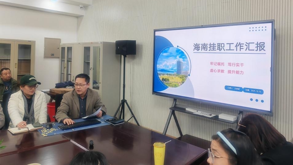 会上,王贵武同志首先分享海南挂职工作经验,详细介绍在海南陵水黎安国际教育创新试验区的工作实践,提出海南项目“规章制度熟记于心”“设计代表驻场全程跟踪”的做法极具借鉴意义,可为我校基建工程提速提质、保障设计落地提供有力参考。